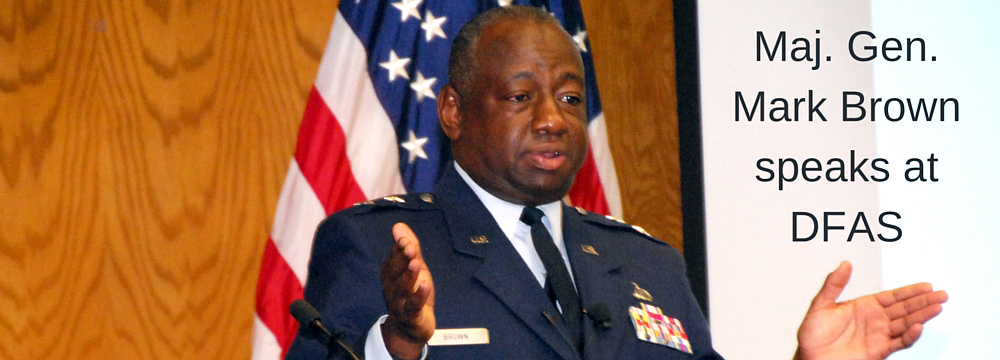 Air Force Maj. Gen. Mark Brown visited Defense Finance and Accounting Service headquarters here Sept. 16, 2015, during the agency’s annual business meeting to speak about 21st Century Airmen and how DFAS could help service today’s generation.